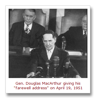 On April 19, 1951, General Douglas MacArthur made a high-profile “farewell address” to a joint meeting of both houses of Congress.